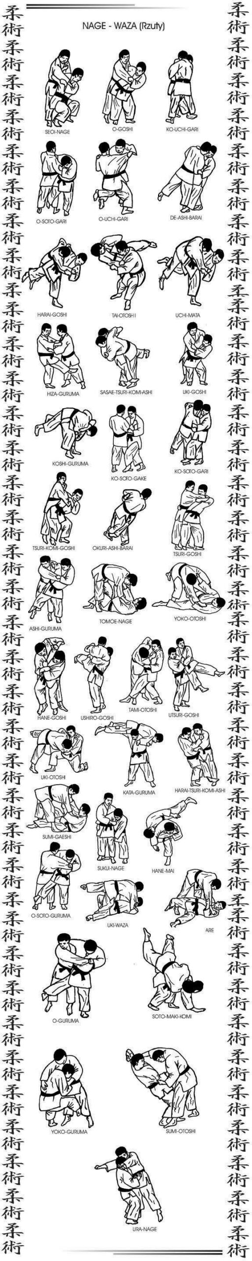 Zestaw klasycznych form rzutów, uczących płynności, balansu i właściwego wykorzystania energii przeciwnika.